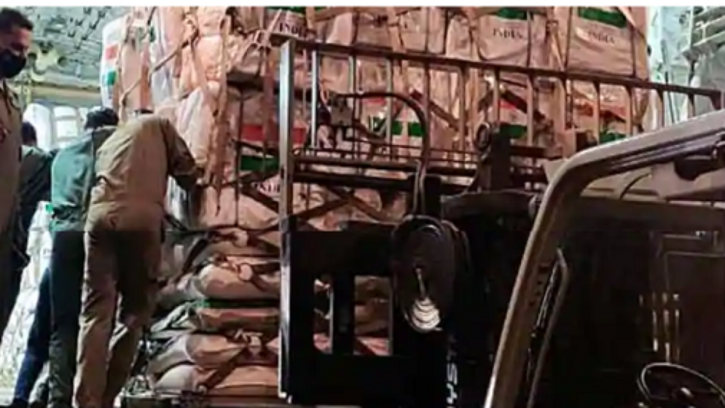 According to an official statement by the MEA, the food aid, comprising 155 MT of wheat flour, 65 MT of rice and 50 MT of sugar, is being transported on the Indian Naval Ship (INS) AIRAVAT, which left Mumbai on October 24.